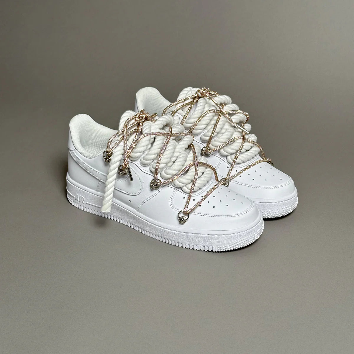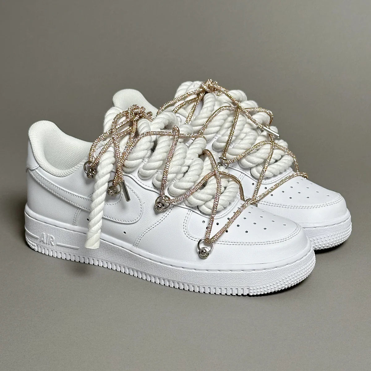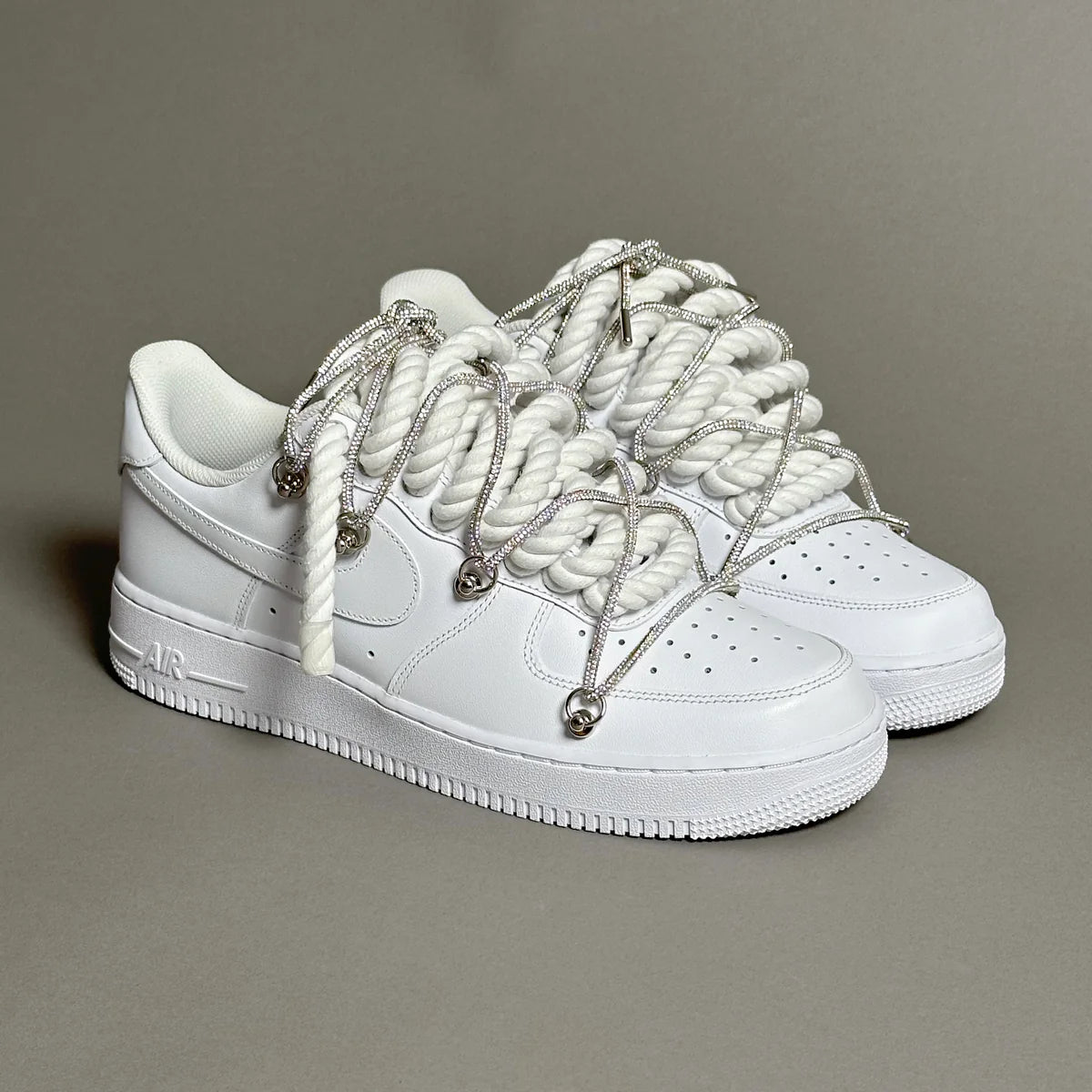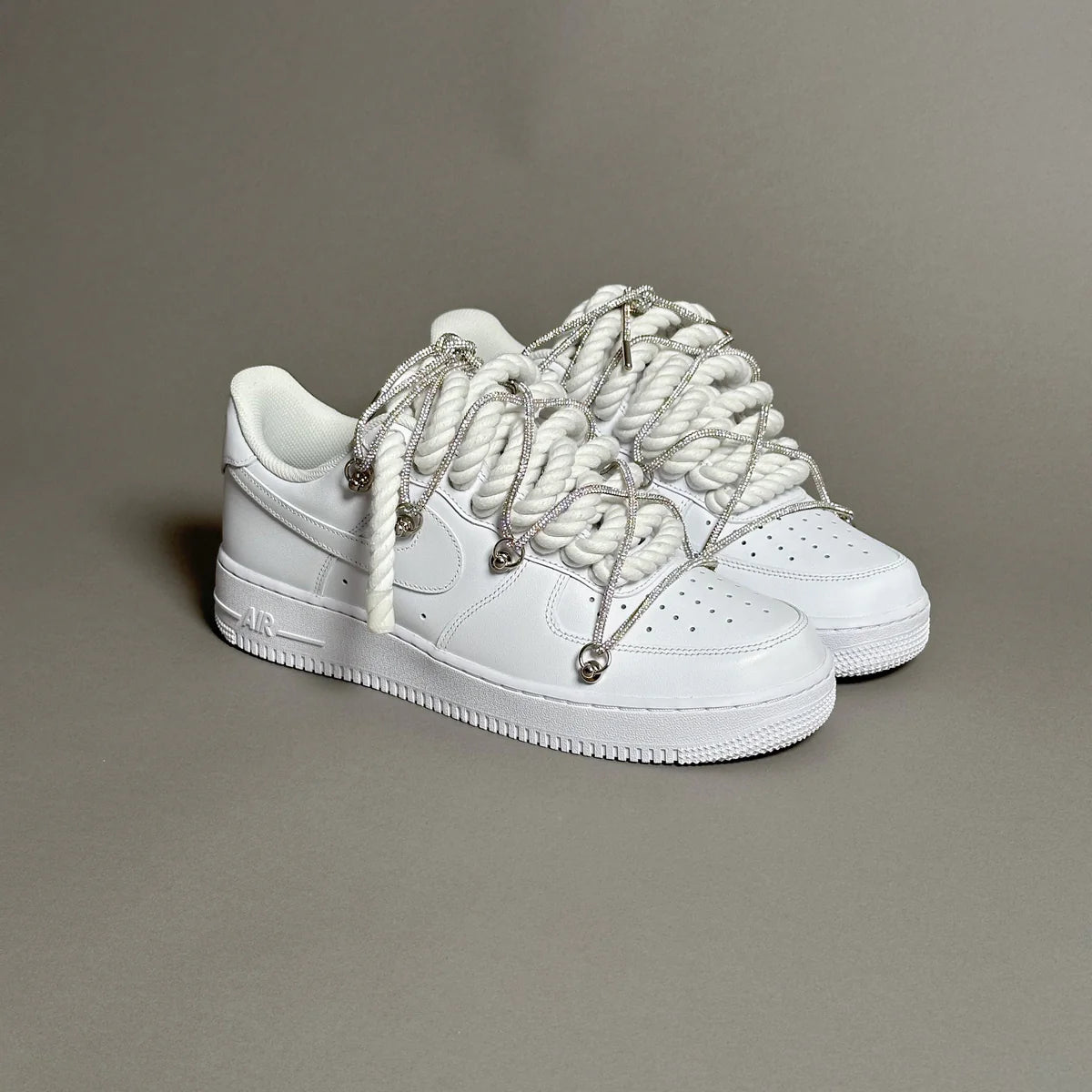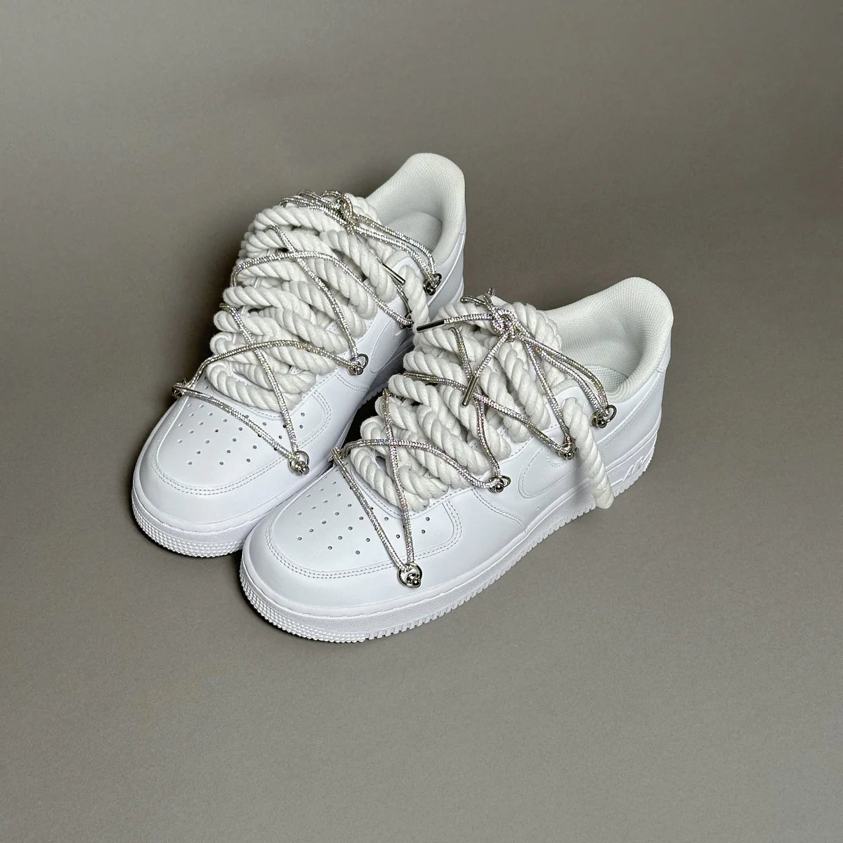 Nike Air Force 1 White “Ropes Laces White” Swarovski Elastic