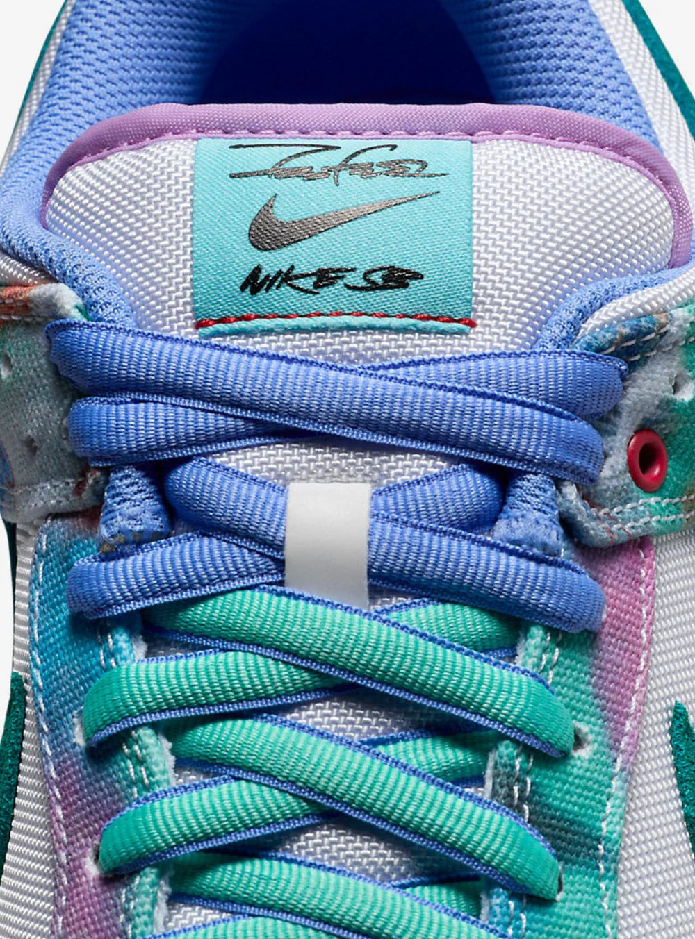 La tomaia in tela leggera è impreziosita da grafiche astratte e pennellate ispirate allo stile inconfondibile di Futura, con una palette che richiama le sue opere più iconiche. Il branding co-firmato sulla linguetta e sul tallone sottolinea l’esclusività del modello, mentre l’unità Zoom Air nella suola garantisce comfort e reattività ideali per lo skateboard, ma anche per l’uso quotidiano.