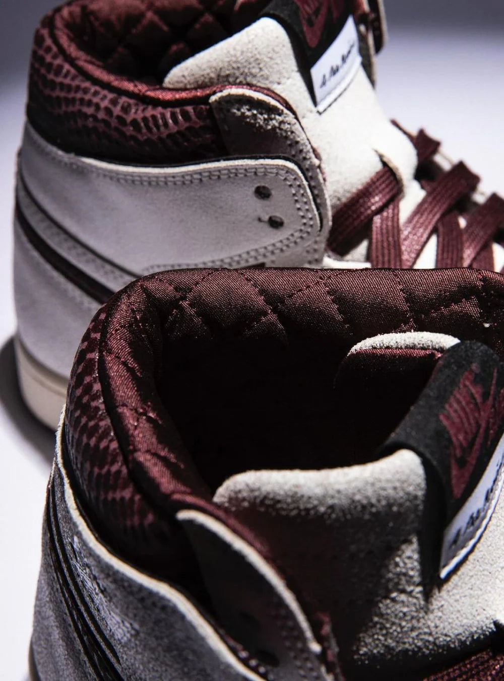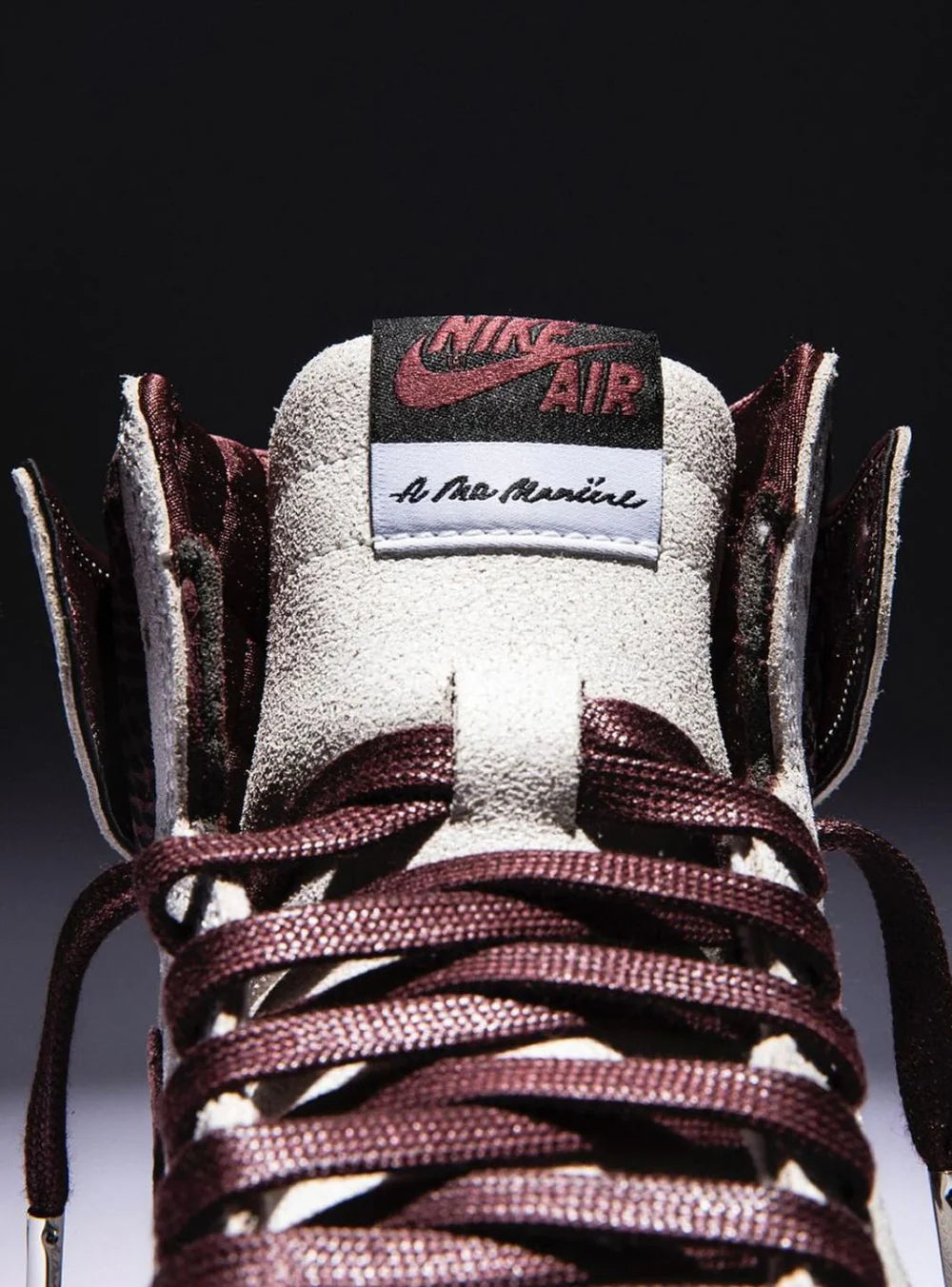 Questa Air Jordan 1 si presenta con una tomaia in suede premium color panna, arricchita da inserti in pelle effetto cracklé che richiamano una bellezza vissuta e autentica. I dettagli in Burgundy Crush, come lo Swoosh e il collarino trapuntato in satin, donano alla scarpa un carattere lussuoso, mentre la finitura leggermente vintage dell’intersuola amplifica il senso di storia e profondità. Sotto la linguetta, la frase “You have to expect things of yourself before you can do them” rende omaggio al valore della consapevolezza personale, uno dei temi centrali nella narrativa di A Ma Maniére.
