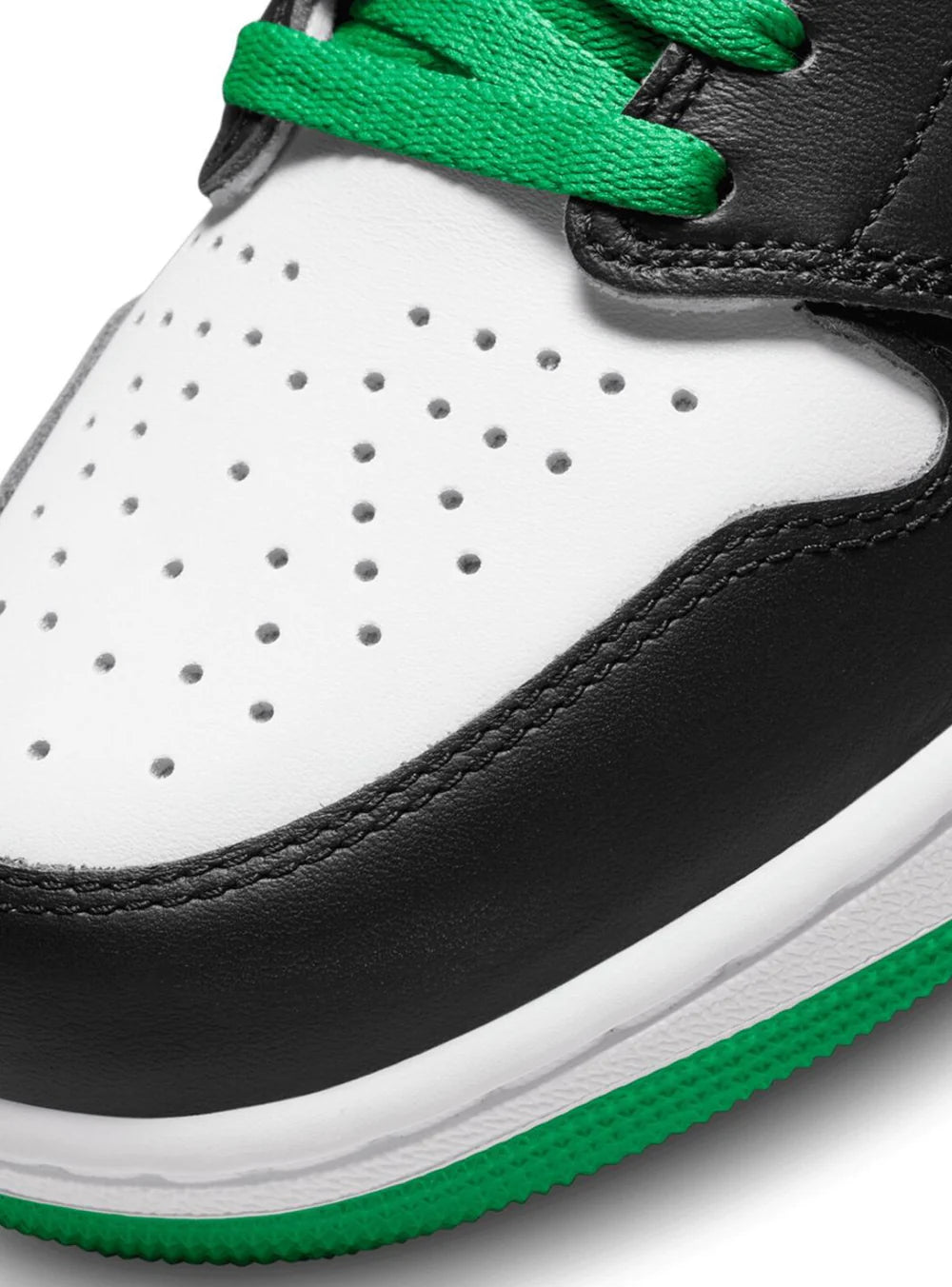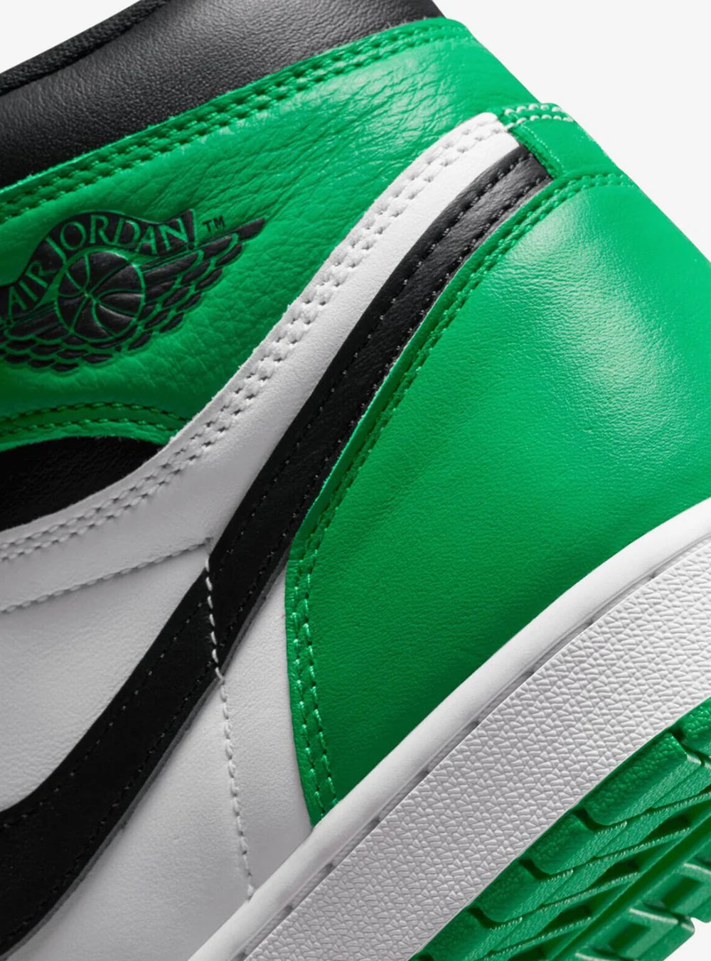 La Air Jordan 1 Retro High OG Lucky Green reinterpreta uno dei modelli più iconici del panorama sneakers, fondendo tradizione e stile contemporaneo. La silhouette leggendaria della Air Jordan 1 si veste di una combinazione audace di bianco, nero e verde acceso, ispirata alla memorabile prestazione di Michael Jordan contro i Boston Celtics nel 1986. La tomaia in pelle premium assicura resistenza e comfort, mentre i dettagli OG come il logo Wings sul collar e la linguetta in nylon con branding Nike Air rendono omaggio alle origini del modello. Una sneaker dal forte impatto visivo, pensata per chi vuole distinguersi con carattere e autenticità.