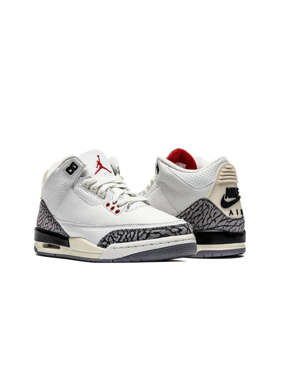 Le Air Jordan 3 Retro White Cement Reimagined celebrano il ritorno di uno dei modelli più iconici della linea Jordan, originariamente lanciato nel 1988 e noto per essere la prima sneaker Jordan disegnata da Tinker Hatfield. Questa silhouette rivoluzionaria ha introdotto per la prima volta l’unità Air visibile e il celebre elephant print, diventando immediatamente un simbolo di stile sia sui campi da basket che nelle strade. Nella versione Reimagined, il design è stato aggiornato per riflettere fedelmente i materiali e le forme dell’originale, con una costruzione pensata per offrire comfort e durabilità senza compromessi.