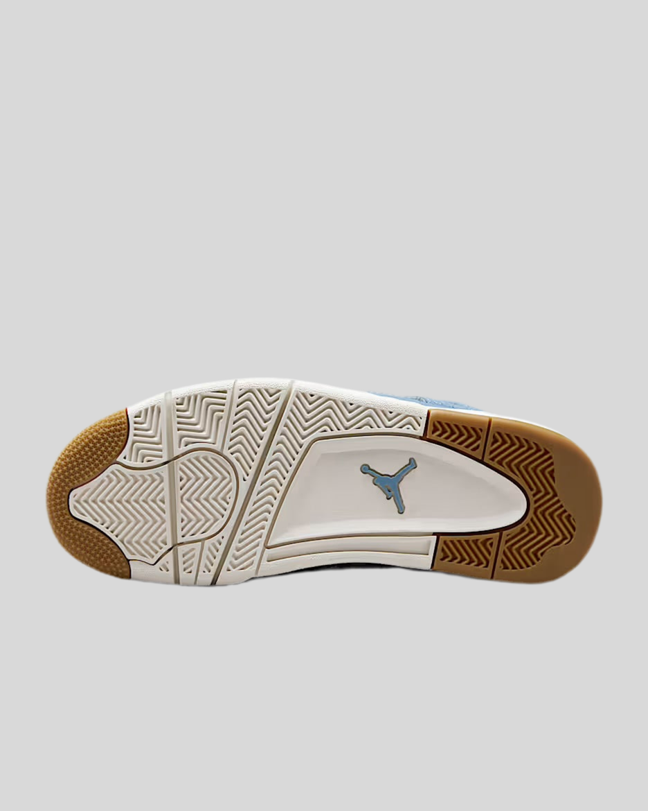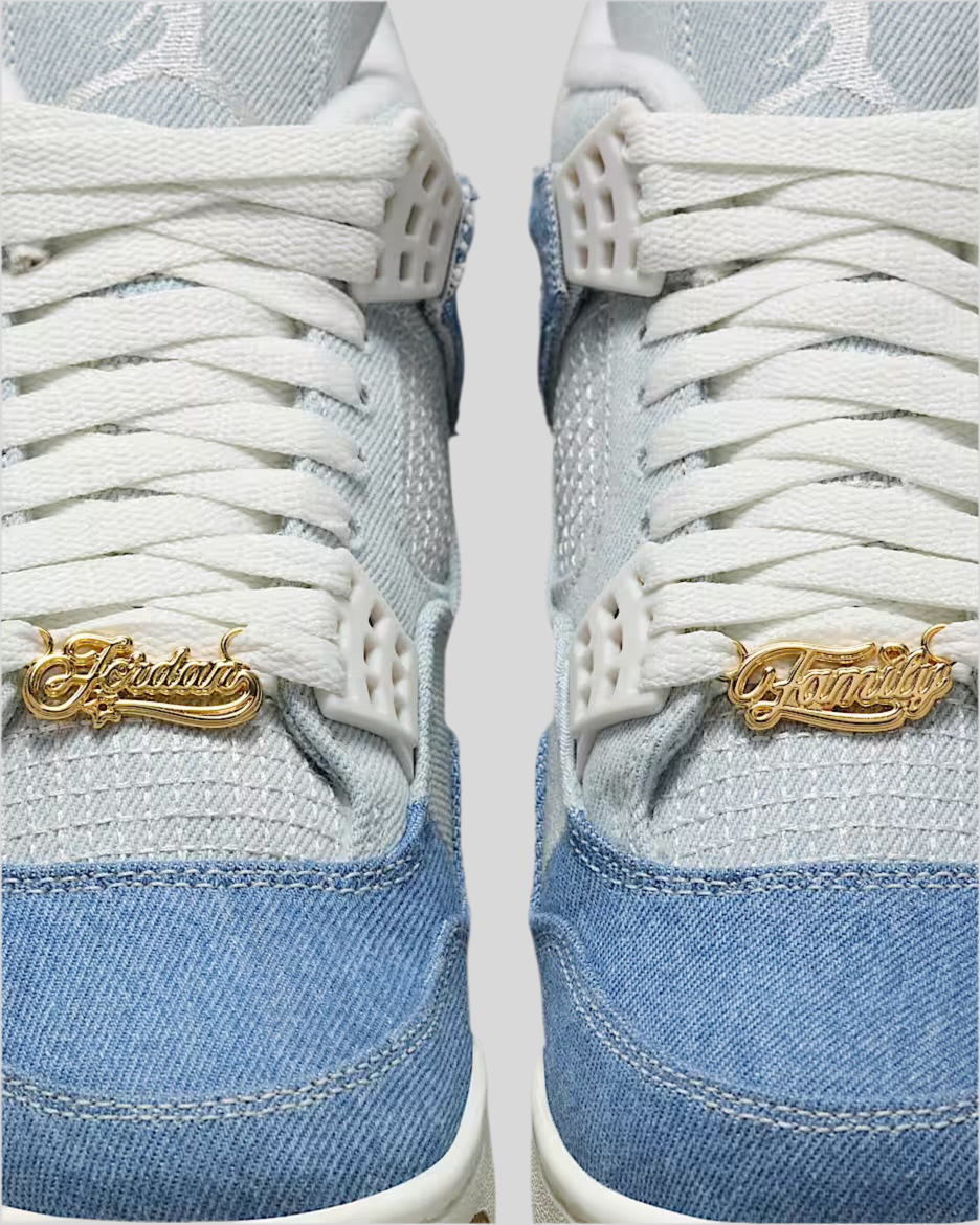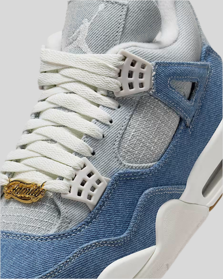 La colorazione Worn Blue (Blu Denim Usurato) si distingue per l’aspetto vissuto e autentico, con la tomaia interamente realizzata in denim che richiama il mondo della moda casual. Gli iconici dettagli della Jordan 4 – gabbia in TPU, linguetta imbottita e heel tab sagomato – restano fedeli all’originale, arricchiti dalla nuova texture in jeans.