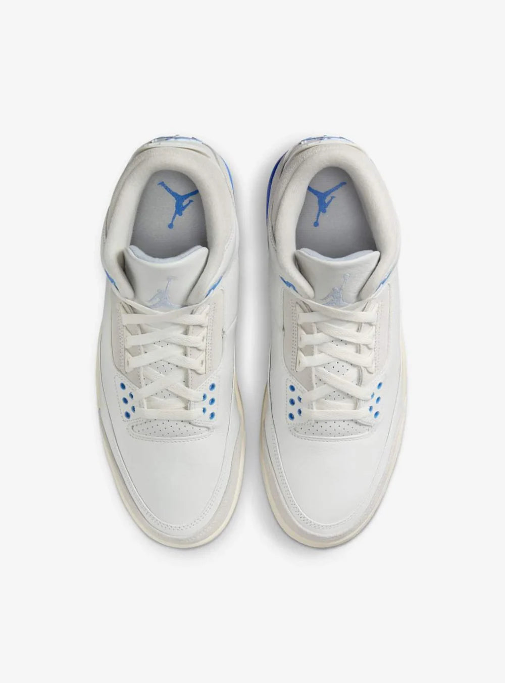 Le Air Jordan 3 Retro “Lucky Shorts” sono un tributo al passato iconico di Michael Jordan e ai leggendari pantaloncini portafortuna indossati durante i suoi anni universitari a UNC. Questa edizione speciale presenta una tomaia in pelle bianca premium con dettagli in blu universitario e accenti rossi che richiamano la palette tipica di North Carolina. L’iconico elephant print grigio completa la silhouette con un tocco heritage.