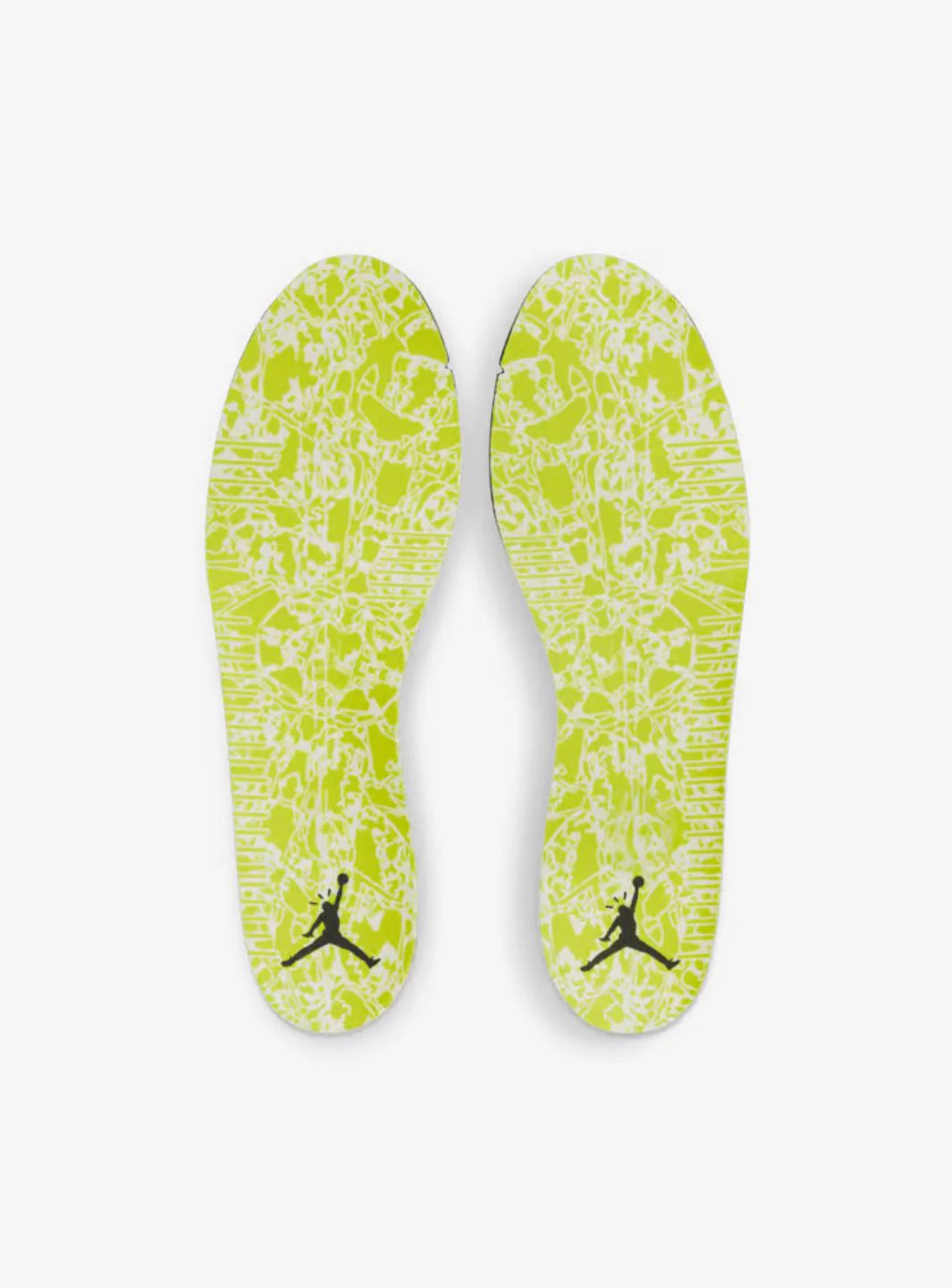 Una delle caratteristiche più interessanti della Jumpman Jack TR x Travis Scott Bright Cactus è l’ampio strap a metà piede, che garantisce una calzata migliorata, offrendo supporto e comfort durante ogni passo. Questo dettaglio funzionale si fonde perfettamente con l’estetica della scarpa, esaltando la sua natura sportiva e versatile. I dettagli neri sui collarini, sulla linguetta, sulla fodera interna e sugli iconici loghi Swoosh laterali completano il design, creando un contrasto che amplifica la dinamica della silhouette e sottolinea il carattere energico del modello.