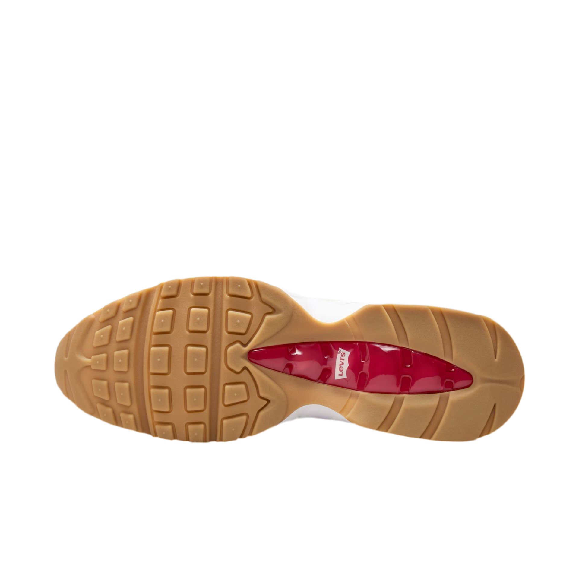 Il design mantiene la classica struttura a strati della Air Max 95, reinterpretata però con tessuti Levi’s® di qualità superiore: denim giapponese, canvas e suede tono su tono. I dettagli cuciti, le etichette co-branded e l’unità Air visibile rendono questa scarpa non solo un must-have estetico, ma anche una fusione impeccabile di comfort e stile heritage.