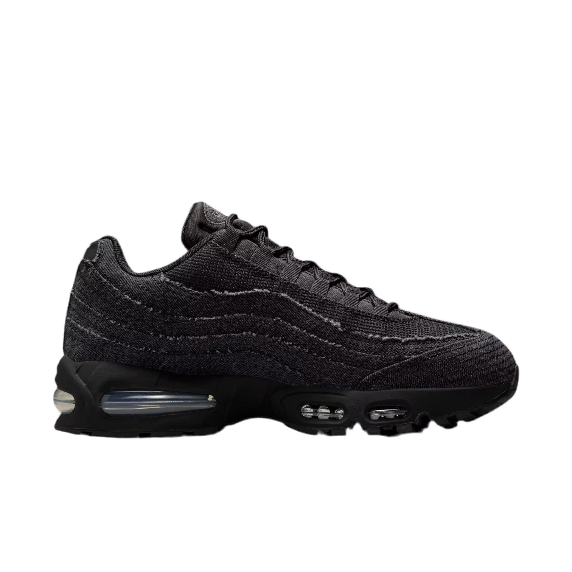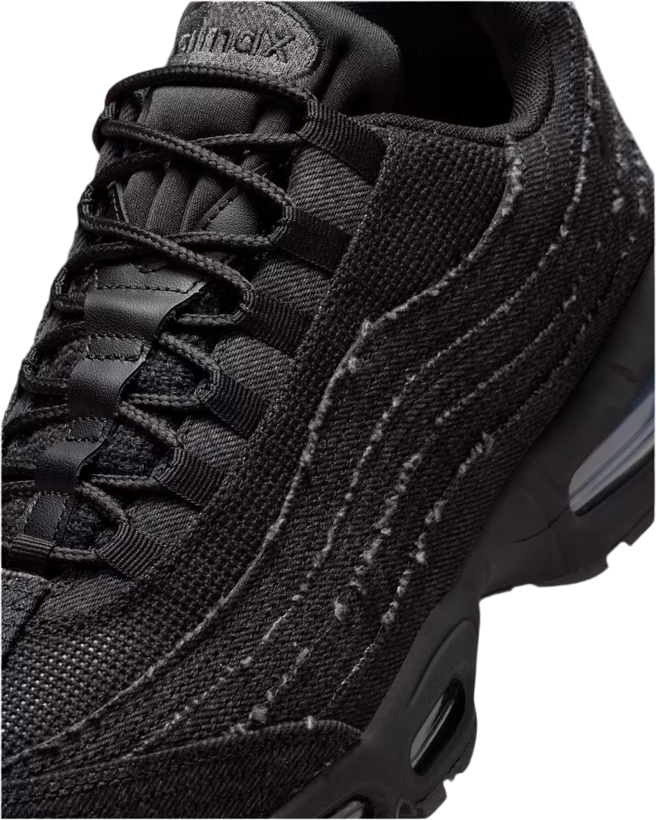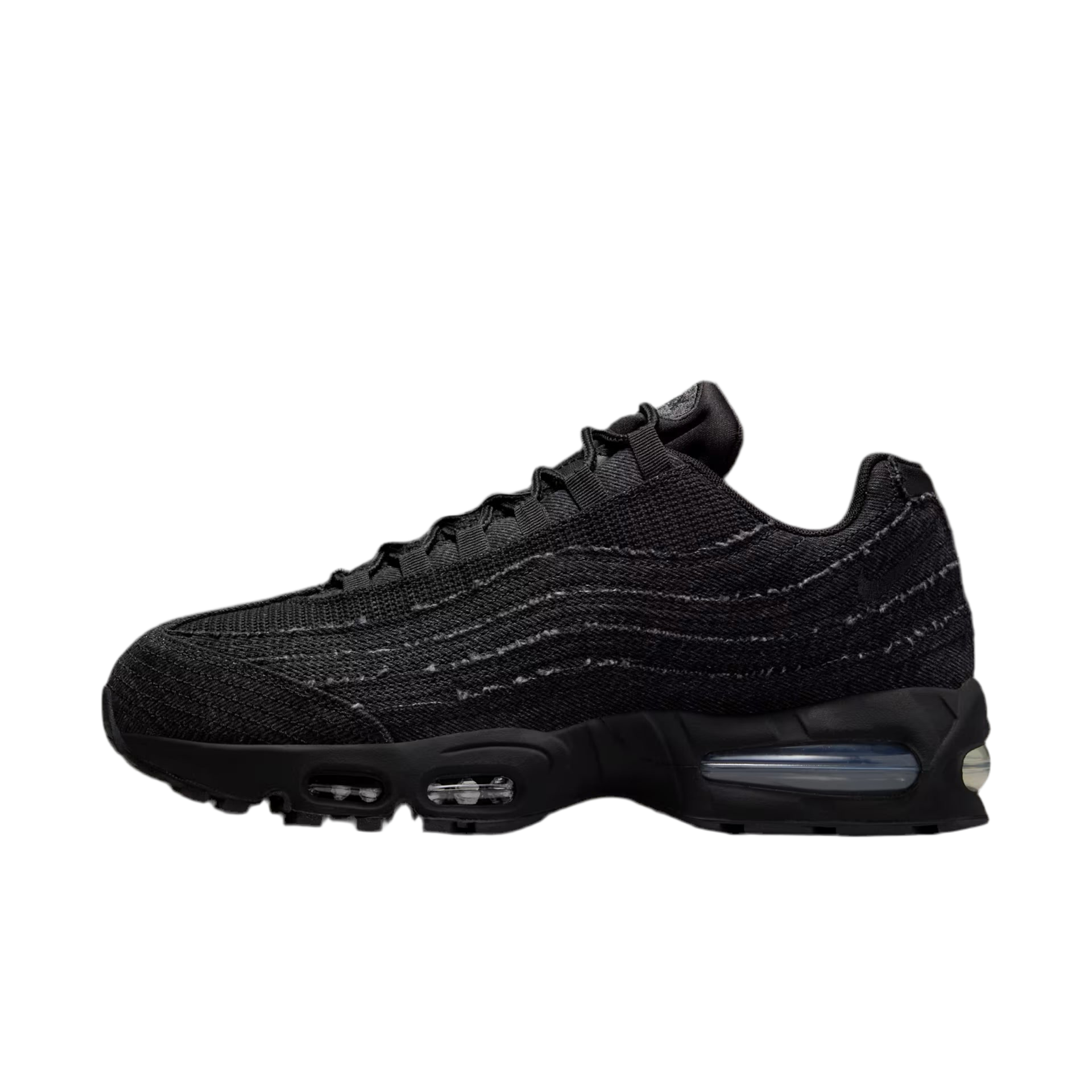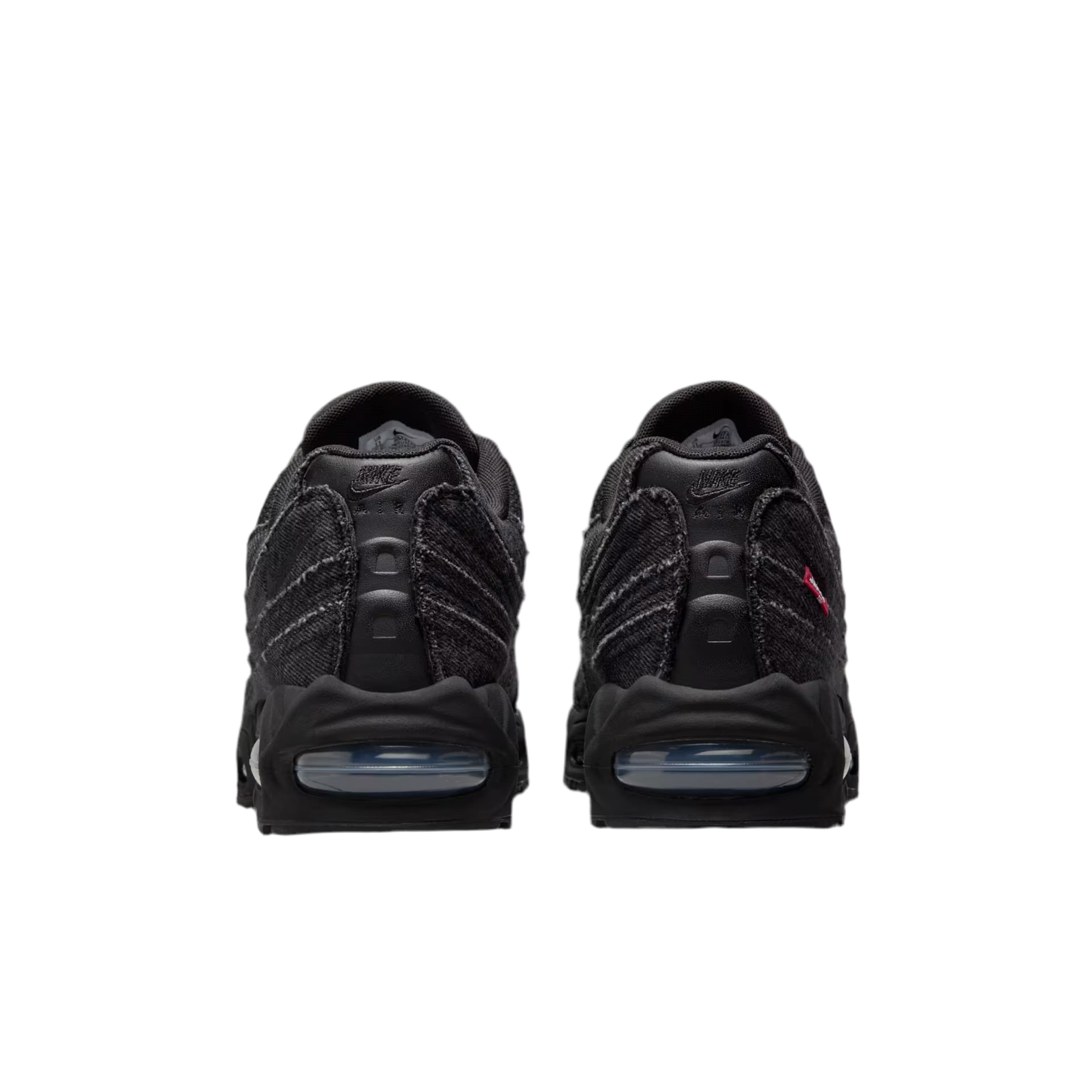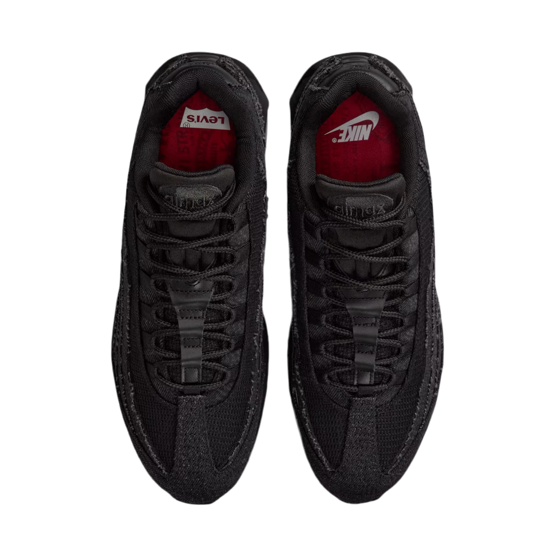 La Nike Air Max 95 x Levi’s® “Black” nasce dalla fusione tra lo stile iconico del denim Levi’s® e il design rivoluzionario della silhouette Air Max 95. Questa edizione limitata propone una tomaia multilivello in tessuto denim nero slavato e suede premium, con dettagli cuciti che richiamano i classici jeans Levi’s®. Il branding co-firmato Nike e Levi’s® è visibile sulla linguetta e sul tallone, mentre l’unità Air visibile e l’intersuola nera assicurano comfort e un look urbano deciso. Una sneaker che omaggia due icone della cultura streetwear.