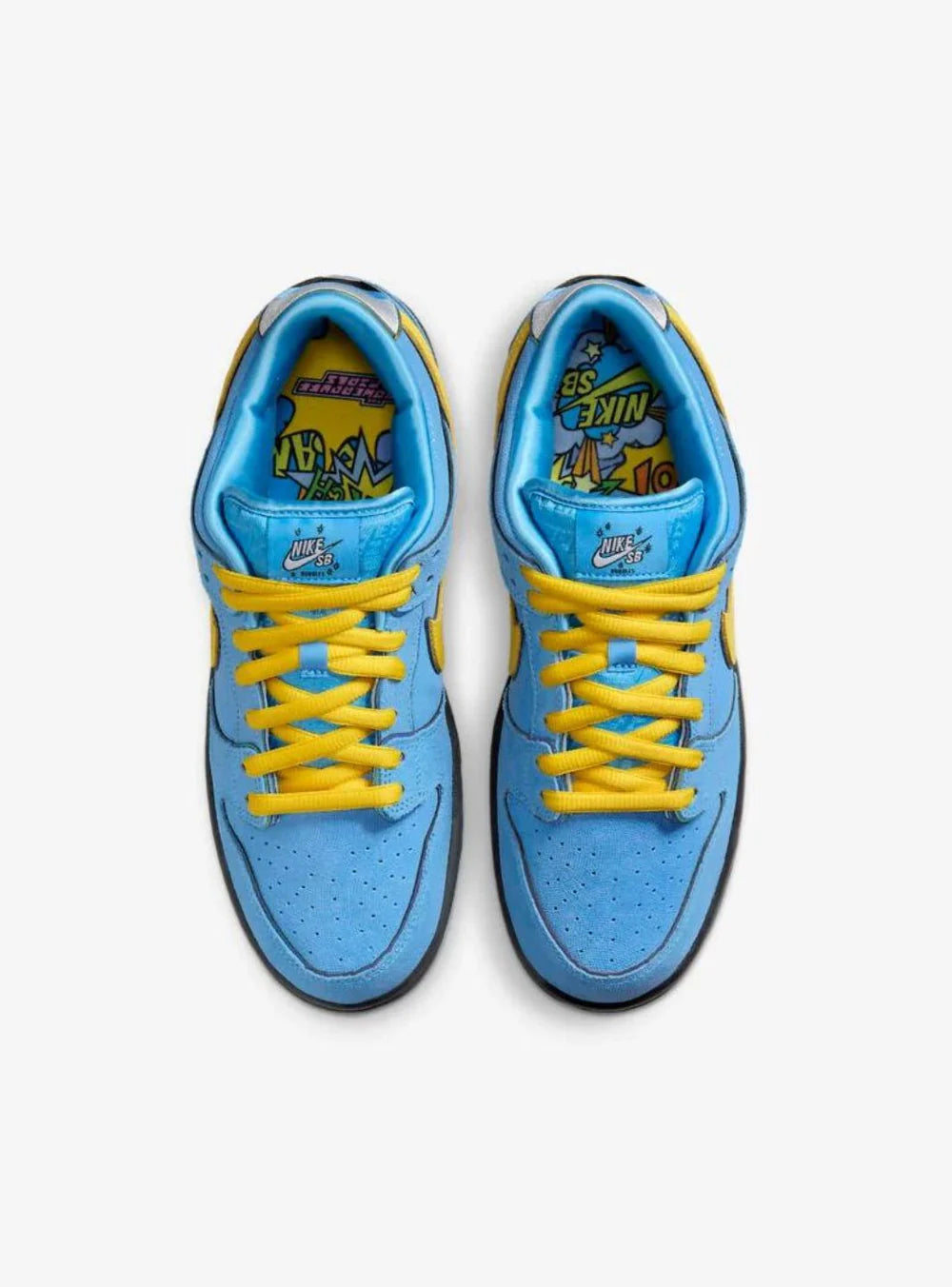 Questa speciale edizione della Nike SB Dunk Low rende omaggio a Bubbles, la più dolce e gioiosa delle Powerpuff Girls. Frutto della collaborazione tra Nike SB e Cartoon Network, questa sneaker spicca per l’estetica vivace e l’energia infantile della serie anni ’90. La tomaia è realizzata in satin azzurro brillante, arricchita da dettagli giallo canarino e occhi giganti di Bubbles sul tallone.